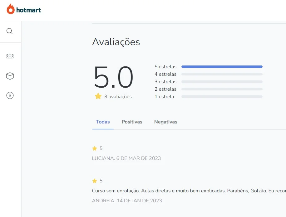 A Hotmart, plataforma de produtos digitais na qual o curso está hospedada, convida os compradores a participarem da pesquisa de satisfação.